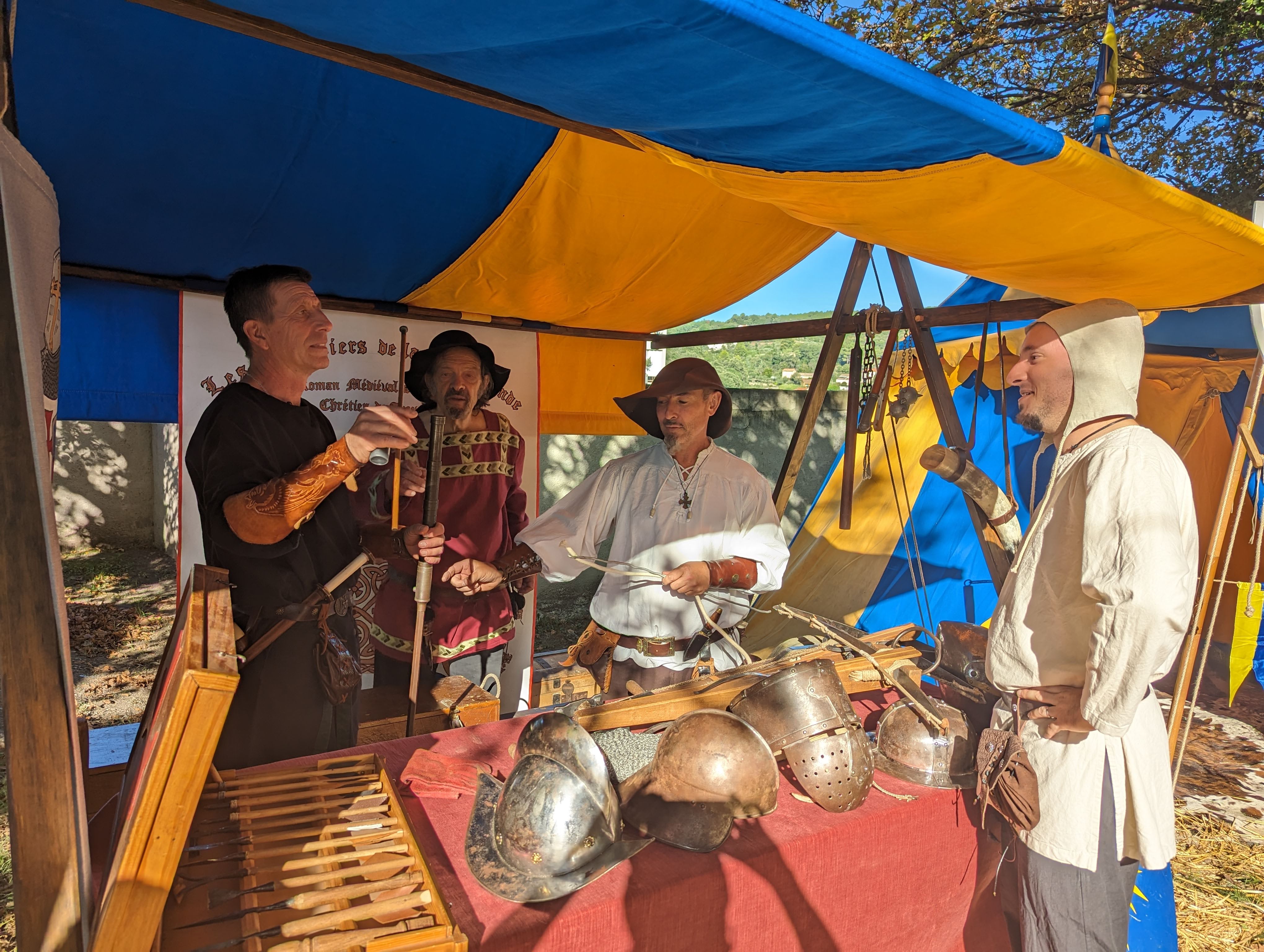 Nos maîtres d’armes sauront vous présenter armes et armures. Découvrez les métiers du tissage, de la calligraphie, de la coiffure et venez sentir et goutter les récoltes de notre herboriste.